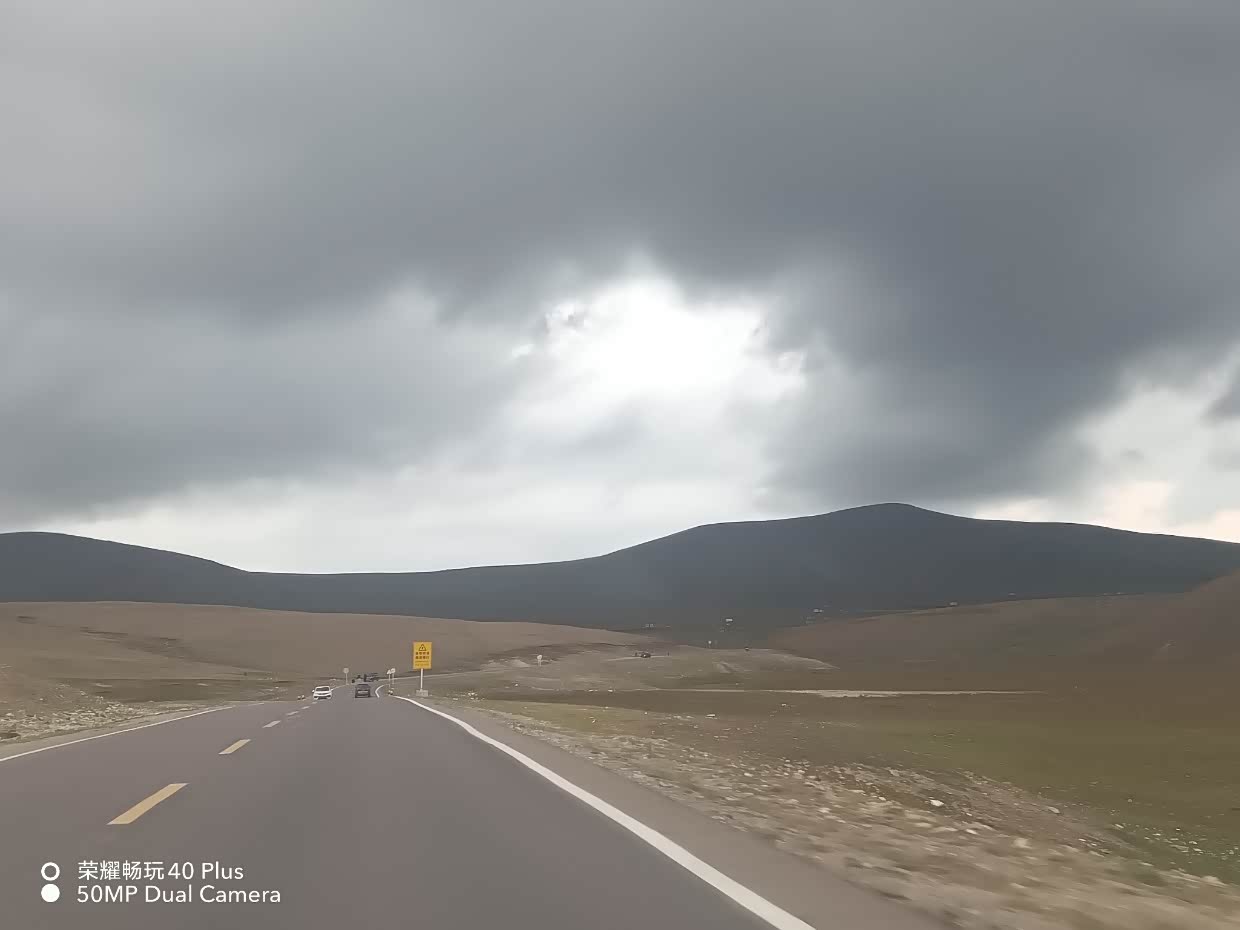 高速路经过日月山垭口,海拔3500多米,不阴天的话能见到日月山主峰,高度4800多米,山顶有雪。