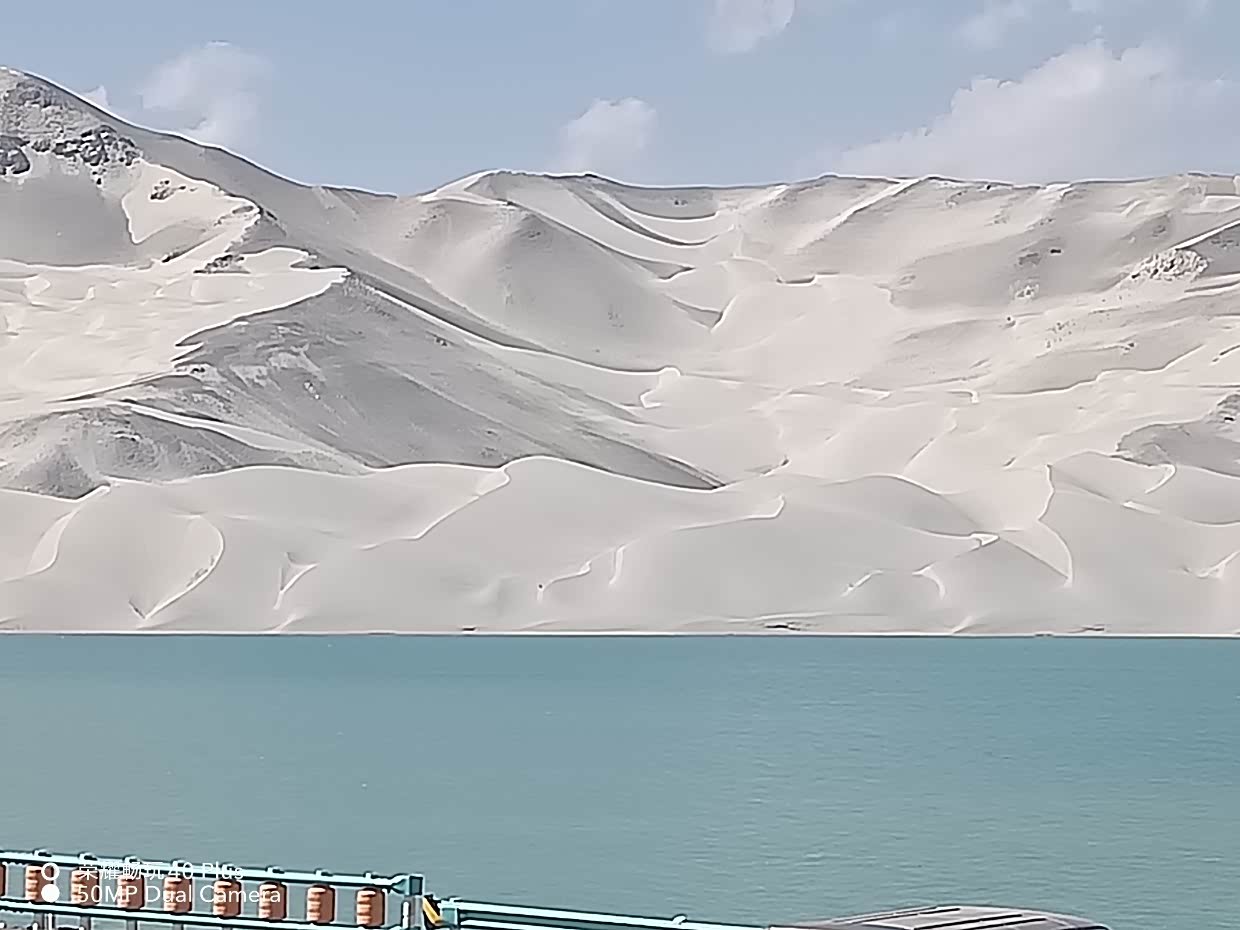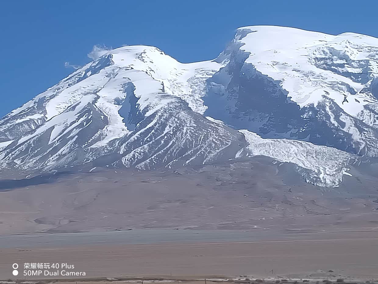 今天的第一个景点翡翠湖,湖南面是昆仑山的雪峰。