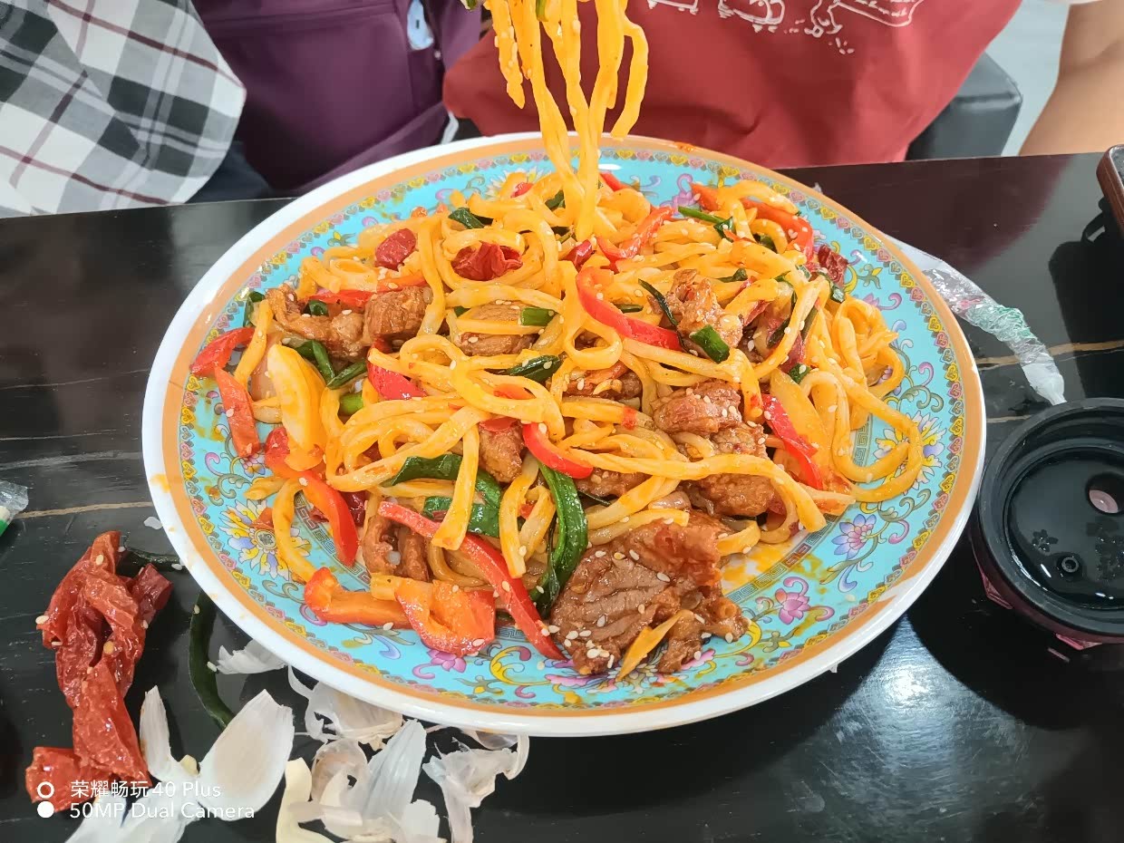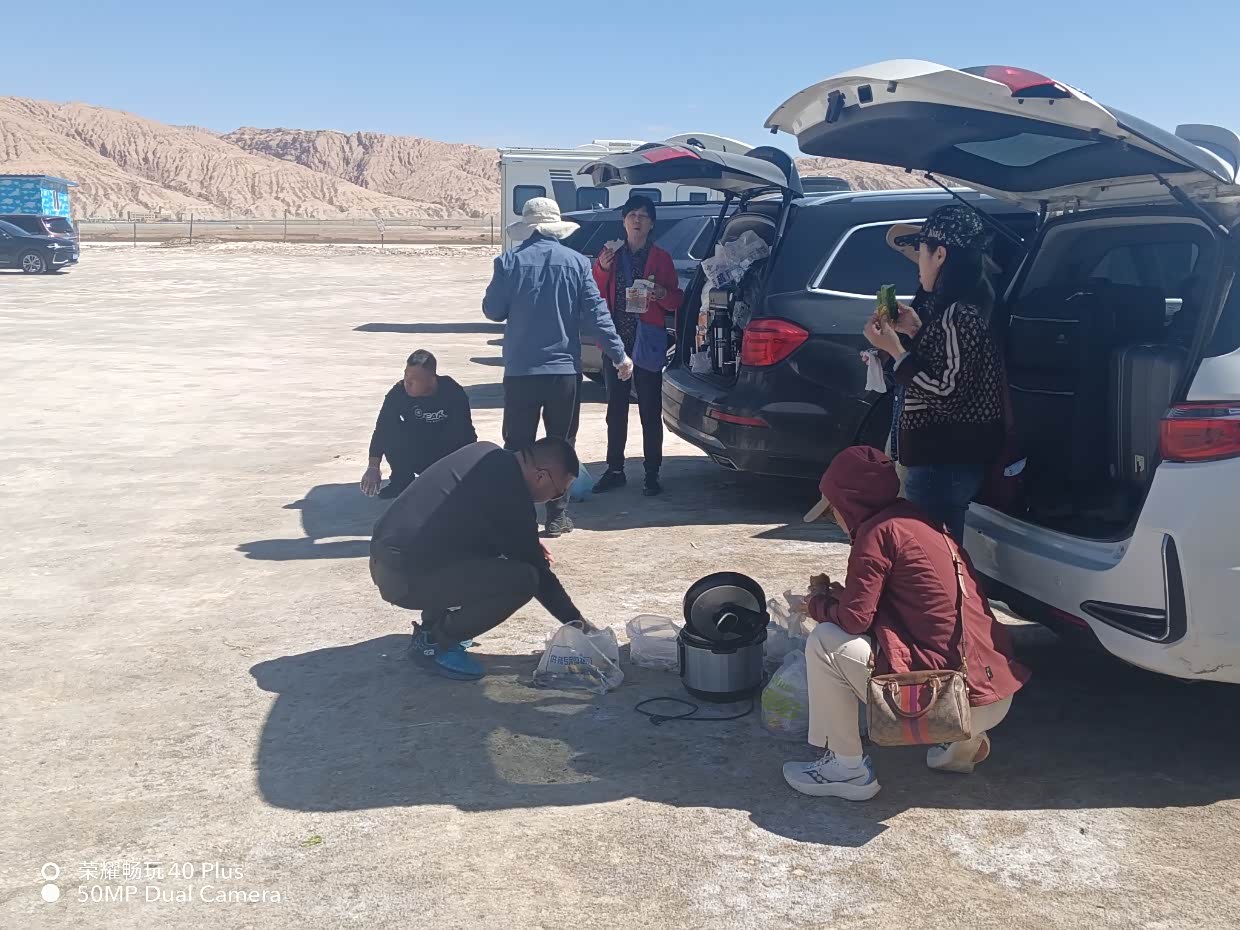 12点从景区出来,再景区停车场就着昨天晚上炖的牦牛肉吃中午饭,引的不少人来看。