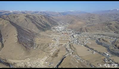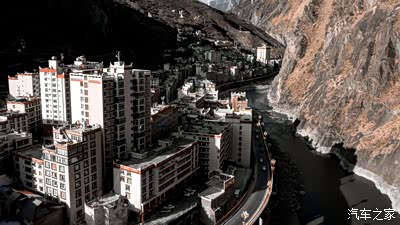 出高速下到318国道,在康定城边,蓝天白云下的城市