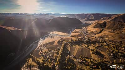 丹巴县城,位于峡谷之中,沿河而建。太阳8点半才慢慢晒过来!