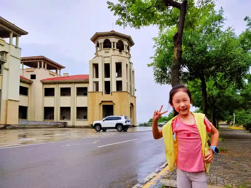 今年夏天烟台的雨水充足,而今天又是阴雨绵绵,下一会儿停一会儿,断断续续的。这样的天气我闺女倒是很喜欢,没有太阳,出来玩也不热,反倒是很舒服的。