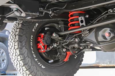 后避震也同样是K-MAN的氮气避震,后止推杆也进行了重新匹配。后桥弹簧内部增加的阻尼器,防止出现减震器打底的情况。并且风林铁骑的轮距也进行了加宽,前轮单侧增加了13.5mm,后桥加宽了27mm。加宽轮距带来的好处,就是直接提升了车辆的稳定性,提升了车辆的抗侧倾能力,在越野过程中的信心更足。