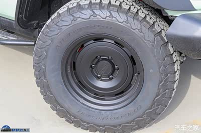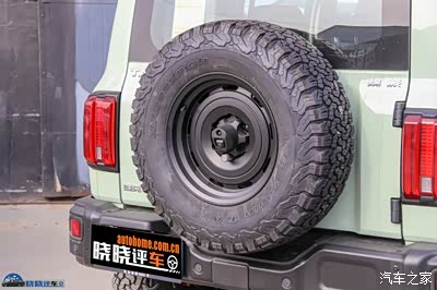 轮胎采用了百路驰KO2的AT胎,可惜并没有搭配车展上的百路驰KM3。轮胎尺寸为285/70 R17,备胎也是一样。这个尺寸相比于越野版坦克300放大了一号。配合升高氮气减震套件,最终实现了2寸升高。我知道细心的朋友已经发现,这台车的轮胎都装反了,轮胎白色车标都向着内侧。这是为了方便大家上牌,保持与厂家公告一致。大家拿到车之后,自行将轮胎反过来就行了。