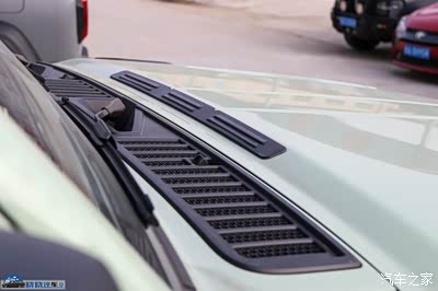 比较细节的地方在于,发动机盖上还有一个黑色的装饰贴,配合发动机盖上面的筋线,做出了一个类似于散热片一样的造型。虽然是装饰件,但是坐在车内的时候,正好可以看到这个黑色的装饰贴。