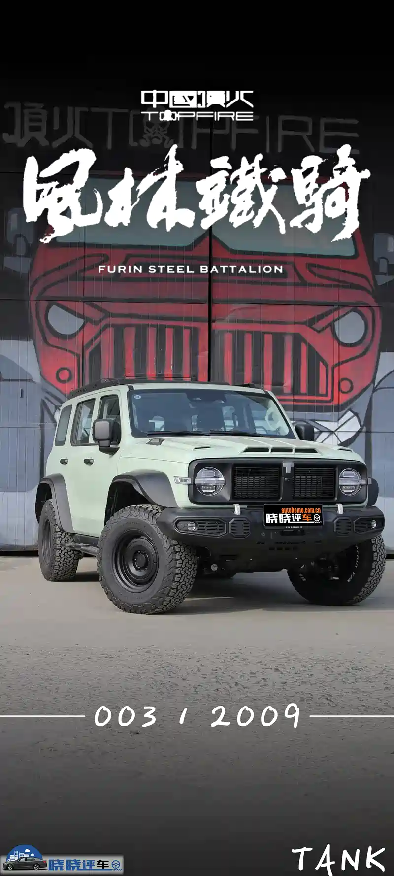 风林铁骑终于正式交付了,这一天我们等的太久太久了。所以在聊这台车之前,我有必要先说一下这台风林铁骑十分艰辛的研发历程。最早我们是在2021年4月份的上海车展,第一次见到了风林铁骑的展车。采用了双拼色的外观,升高车身,加大加宽的轮胎。当然,那时候还不叫“风林铁骑”。但是一台改装车,或者说是一台概念车,从研发到落地生产都要有一个过程。毕竟一台能够量产销售,并且能够通过3C认证的产品,是要经过非常多的工序检测,也要满足各种要求。顶火,作为一个越野车改装品牌,能够和坦克300合作共同研发,到最终产品落地,这件事本身就已经非常了不起了。