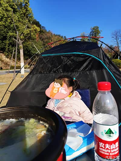 一家人在帐篷里吃吃喝喝,非常舒服