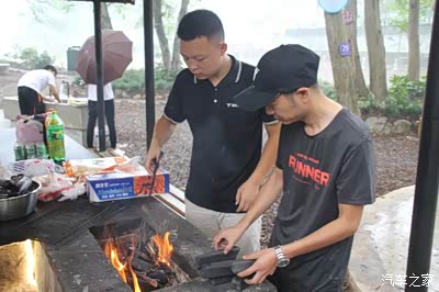 先生火,男人们把酒精倒在木炭上,火旺了起来,万事具备,只欠东风。