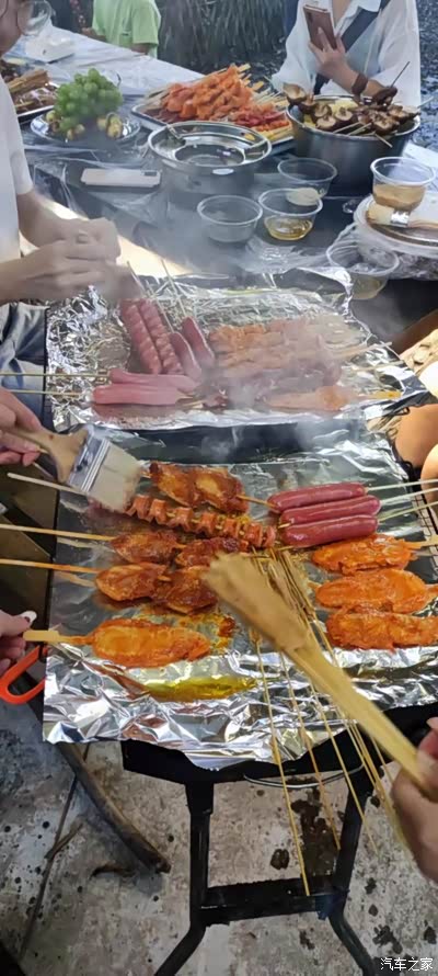 我们顾不得看这些了,赶紧叫大人们拿出了烧烤用具、羊肉串、香肠和鸡翅。