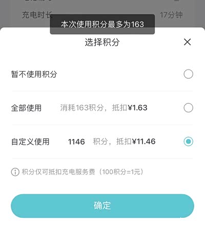 这个时候!积分就派上用场啦!积分可以直接抵扣服务费!要知道很多时候公共充电桩贵就贵在服务费呀,因为我本来也是满电出发,也就充了10度电左右,加起来是13块多电费,积分抵消了服务费,实付款11+~那个站场也很贴心,我停了半小时都没收停车费!要是积分可以全部抵扣电费就好咯,当然能抵扣一部分也很开心!吃公粮的姐妹们都快快去安排起来!
