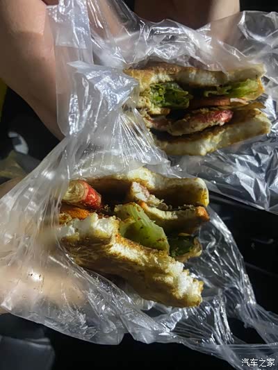 买了个饼子夹菜就坐在车里垫巴了一下,回想起来以前骑电动车的日子,风里来雨里去,有一辆车的感觉真好啊!