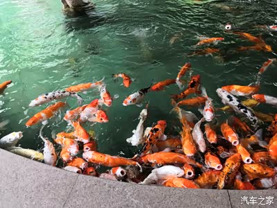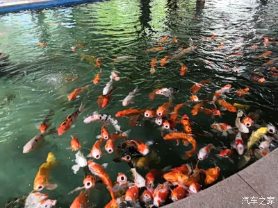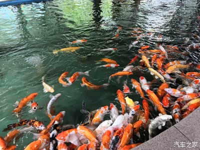 好多鲤鱼,看到人游过来张着圆圆的小嘴。