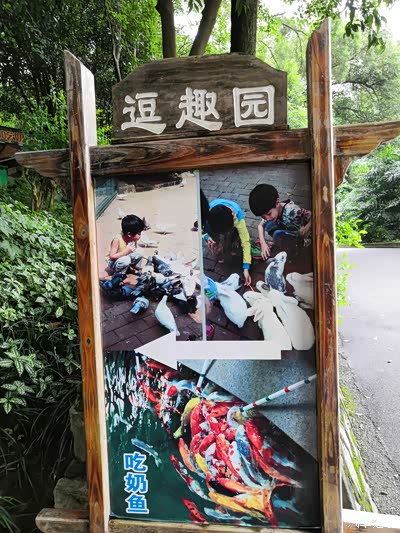 走到公园的中心区可以看见两个深潭,一个叫雷潭,另一个则叫龙潭,应该就是这个原因所以取名叫龙潭公园吧。这里的湖水格外清澈,牌子上介绍湖水来自地下水,可以看到里面有很多各种颜色的观赏鱼在河岸边游动,好多游客在岸上边喂鱼边赏鱼。
