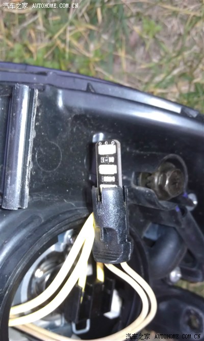 下面圈圈里的就是神秘的示宽灯了,到这里就悲剧了,原车的那个卤素灯泡都超级难拿下,手伸不进啊,现代的脑残设计师。不能硬掰,很可能会断,或者灯泡就掉灯罩里了,那你就更加的悲剧了。我的就断了一个瓣,还好不影响使用。拿这个灯泡足足费了我20分钟。不想再说现代的脑残设计师