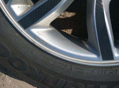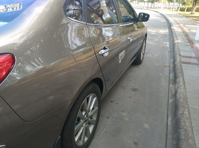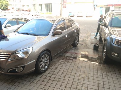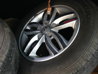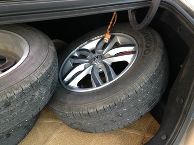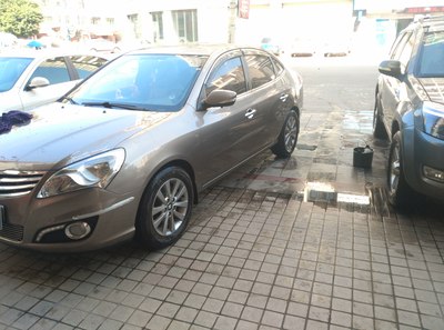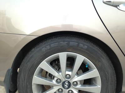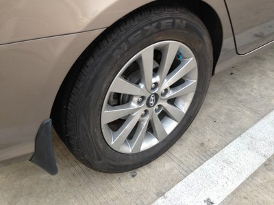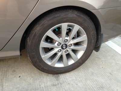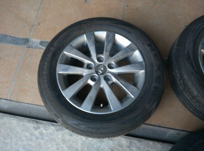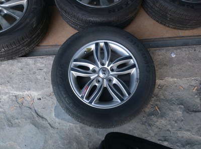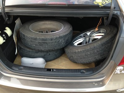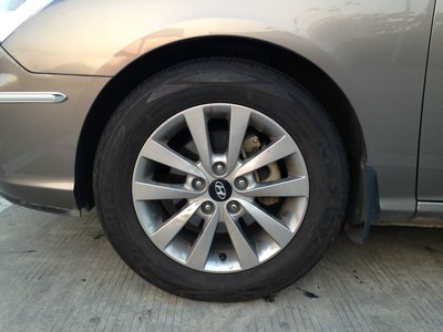 悦动开到现在都两年多,改了不少东西了,什么胎压监测啦,左右可视啦,后防撞梁啦,还有一大堆零零散散的东西,就是一直没改过轮毂,因为平时跑得少,一般都是跑跑高速,平时在小地方里都是小摩托飞奔,无比畅通,一个星期有时都是六天停在地下车库的,第七天开出来洗洗车,哈哈,所以原来的韩泰一直也没啥问题,前几天去4S保养时,师傅说我的胎还没问题,继续跑,快三万了,呵呵,后来车友会的杨兄弟游说我换大轮毂轮胎好啊,悦动换个大一点的,能开出大奔的滋味,哈哈,开玩笑的,后来就一直有留意,跟人谈过K3的,朗动的,却一直没注意到名图的,应该来说K3和朗动的数据是最适合悦动,也是最多人换的,无意中发现一深圳的哥么有一套名图的,新车一千多公里换下来的,太好了,谈好价格,因为正在外出差,周六一早请假回深圳,再享受一下15寸的韩泰,等一下回来可就是16寸的耐克森的了,呵呵,轮胎的品牌都是半斤八两,直接杀到那哥么放轮胎的地方,哥么的朋友还带我去装胎,呵呵,因为我原来是装了胎压监测的,要拆胎压过新胎这里,但是有两个坏了,我又得重新买两个传感器,换了后,第一感觉就是高,感觉底盘高了,过减速带时,不再有那种摇来摇去的感觉了,回来的路上又跑了高速回来,感觉稳,油耗呢,我还没去算,但是车速表确实比实际的慢了3,因为我车上有一个电子狗,应该是通过GPS显示的,还有一个优驾就是OBE蓝牙的,应该这个的速度较为准确吧,跟我的车速表确实存在相差3公里的情况,比如车速表100时,我的OBD会显示103,这个不知道能不能调,不能调也没多大事,好了,不说了,没图没真相,GO,上图