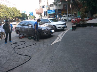 拆胎罗,要换了,蓝色鞋那哥么是朗动车的,呵呵,好像要打气还是怎么来的![]()