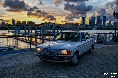来到码头,正值日落时间,落日的金光撒在这辆30岁的奔驰上, W123作为奔驰产量最大的一台车,在10年内总共生产了近270万台,可时过三十年保留下来的W123已经很少了,随着电车的推广,这些燃油车老车在慢慢消失,希望每一辆老车最后都可以找到一副好人家,一直保持着它最年轻最优雅高贵的一面。