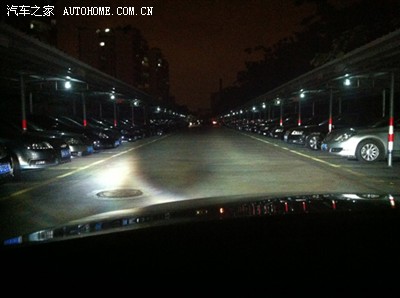 这是晚上在我小区停车场的效果,的确是光了很多,郁闷的是为何中间有一个u型的区域不够亮?求高人指教.......