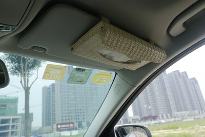 副驾遮阳板,某宝买的纸巾包,感觉占用空间小,很方便。