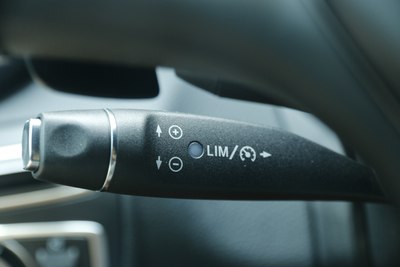 LIM是自定义限速,比如限制80迈,当速度到了80继续踩油门也不会提速,可以防止在一些限速路段因为大意造成不必要的违章(地板油可以打破这个限制)。另一个表盘一样的是定速巡航,这个就不介绍了。银色按钮是两种模式的切换
