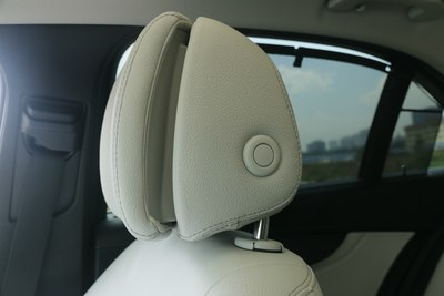 可以手动调节的头枕,个人感觉弯曲回来会更舒服,很贴心的配置。圆形按钮是控制头枕高低前后的。