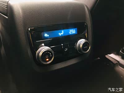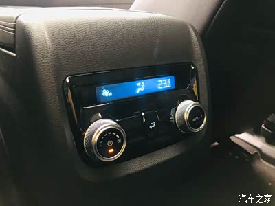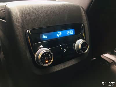 二排中间是一个独立的空调控制区域,左边开关调节风量大小,右边调节温度高低,中间儿的小座椅标识可以调节风向。