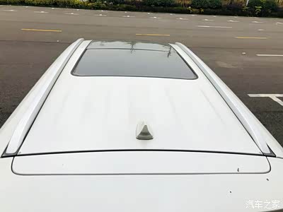 车顶是一个大平顶的设计,前面是标配的大天窗,后面还带了一个小小的鲨鱼鳍。