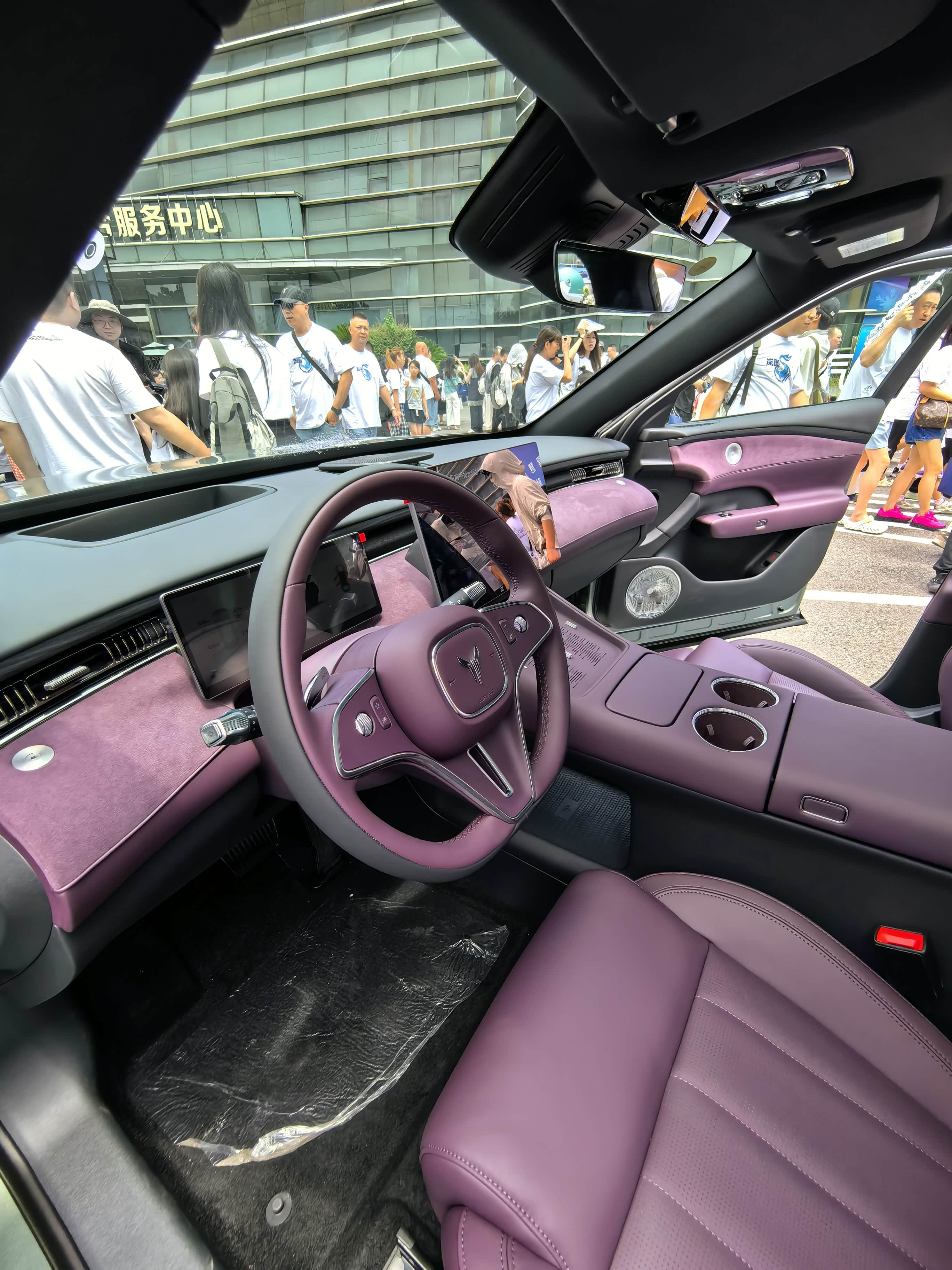 拉开车门,扑面而来的是一种“轻奢”感。能摸到的地方,大面积用了软性材料、麂皮(顶棚手感尤其好)、还有金属质感饰板,做工挑不出大毛病。最抓眼球的肯定是那块三联屏!从驾驶席一直延伸到副驾前方,点亮后科技感瞬间爆棚。屏幕显示细腻,操作也算流畅。不过,这个大玻璃板在强光下反光问题确实存在,深色主题会好点。方向盘握感厚实,按键反馈清晰。那个小巧的水晶挡把挺精致,算是内饰的一个点睛之笔。