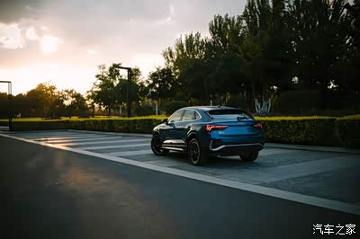 正面的造型和正常版本的Q3没啥区别,但车顶的部分还是挺明显的,溜背造型让顶部的线条很快就消失在视线中。(我想把这个中网改个颜色,纯黑的估计会很好看!