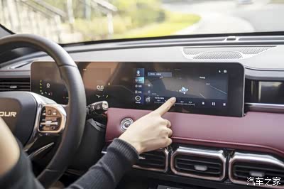 空调系统的控制面板的设计很特别,是触摸屏的配置加上了物理旋钮,科技感是实用性在这上面体现的很明显。