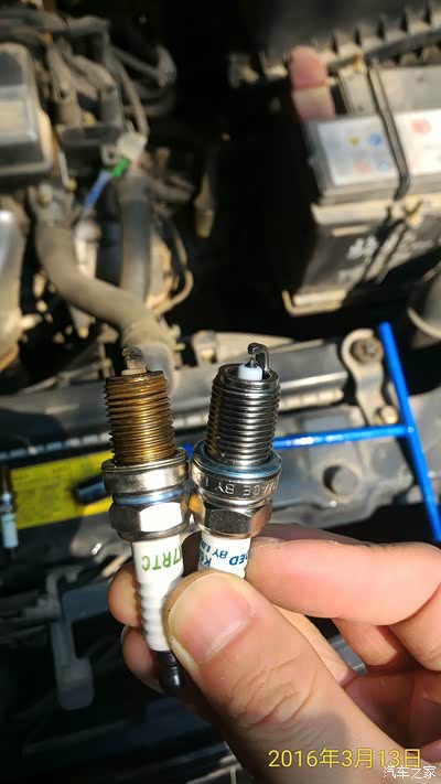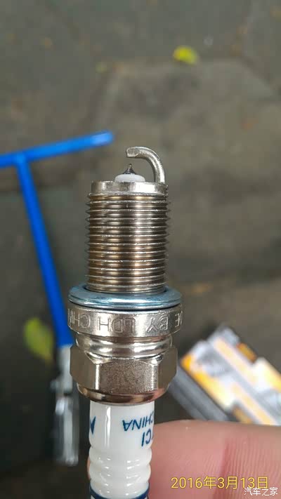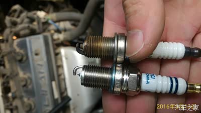 细心的车友会发现新的较旧的螺纹短一点·其实不然·注意看螺纹下面的两个垫片就明白了·新的垫片是凸的·旧的是平了·所以显得旧的螺纹长·看之家帖子里很多车友都用扭矩扳手看着扭矩来扭·我觉哪有这么麻烦·火花塞扭进去感觉到垫片的阻力了·再扭个三分之二圈就够了·一样·靠自己来感觉·