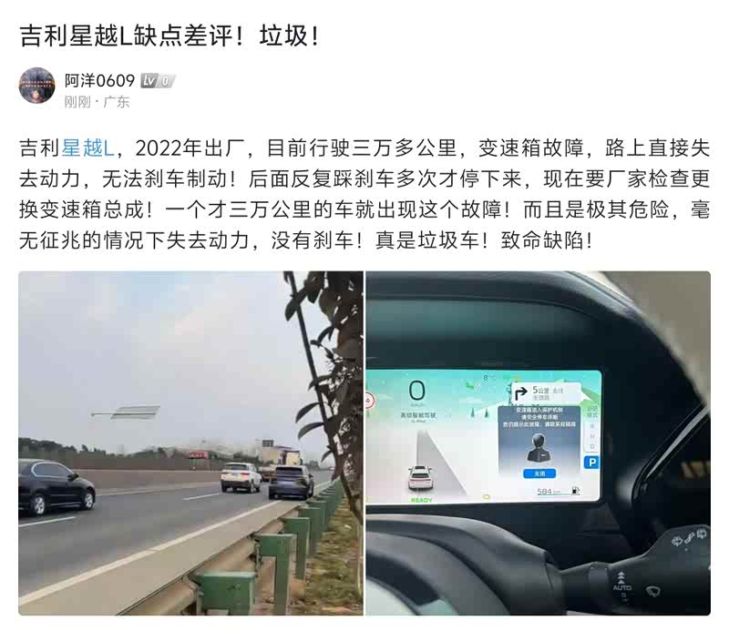 吉利星越L垃圾,一年多的车,变速箱直接坏掉!要换总成!