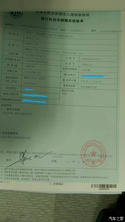 这是检验单,入境日期是11月23日,车子是7月份产的,在路上也是够长时间的。