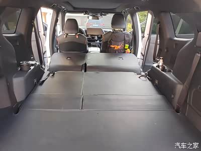 陆放的空间很大,虽然轴距只有2850mm,但没有对第二排空间影响太多,也充分照顾了第三排乘客的乘车感受。把第二三排都放倒的话,横向宽度达到近1.5米,纵向宽度近2米,躺下两个中等身材的成年人一点不拥挤,如果夫妻二人喜欢露营旅行,即使在这寒冷的冬季,带上移动电源和暖风机,铺上被褥就可以出发了,会省下一大笔住宿费用。
