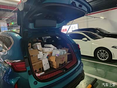 我自己的物品都不大,放在了前排。后备箱里都是给我家猫咪买的东西猫砂,猫粮,猫冻干,化毛膏。装满了整个后备箱。