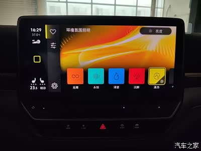 30色可调内饰格调氛围灯,不同区域氛围灯能够满足用户对车内环境的不同需求,可分区设置氛围灯颜色,颜色可自主选择或与驾驶模式联动,信息娱乐系统的颜色跟随氛围灯颜色统一变化。