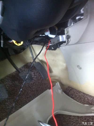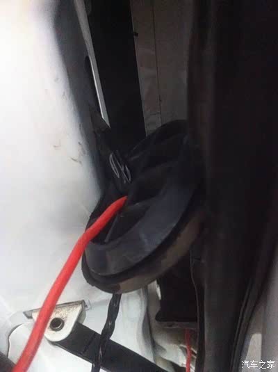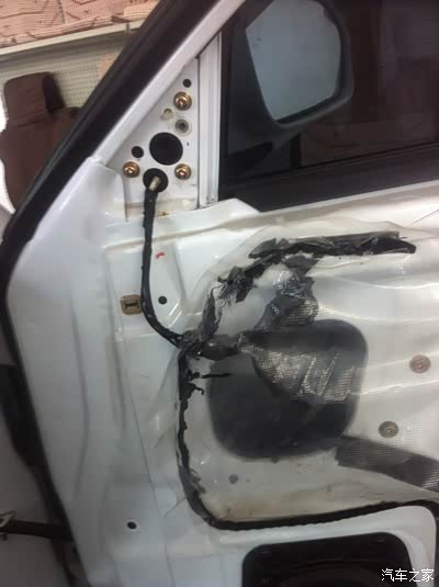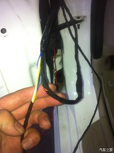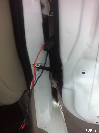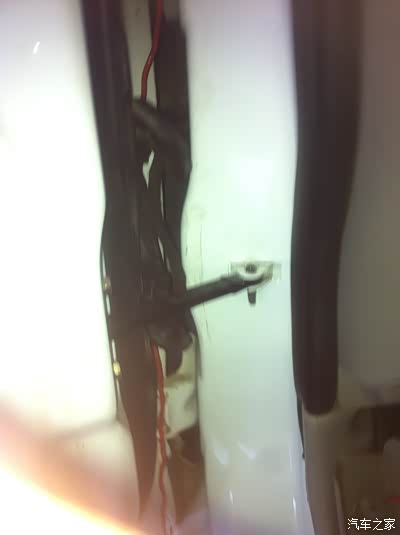 洗涤灵应该都能弄到吧,穿线的时候抹点这个,会特别顺利。我是用的一根粗电线从黑色线管下面往上穿的,感觉比从上往下好穿,图中另外一组黑线是装防盗器时左前门加了一支锁,当时也是懒就把线陋外面了,这回顺便都走到管里了,如图