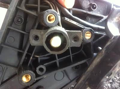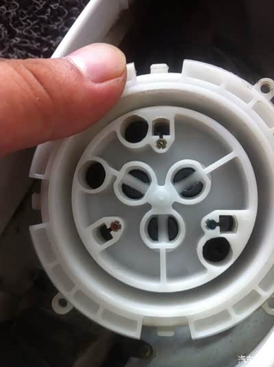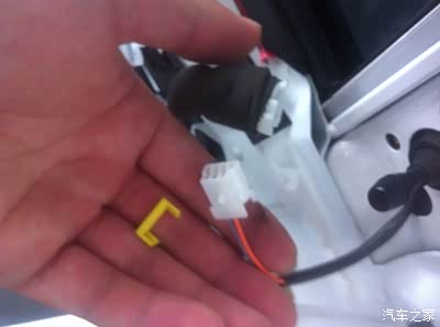 接下来拆掉后视镜调节杆处的三角板,拔掉转向灯的插头再拆下三颗螺丝,需要注意的是有一个小卡扣白色的别弄丢,如图