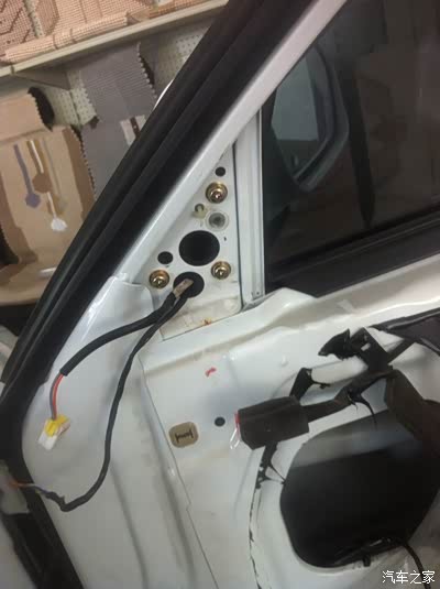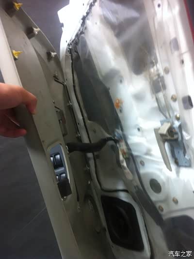 拆掉方向盘下方的护板我就开始拆左边的门板了,也是四个螺丝,如图