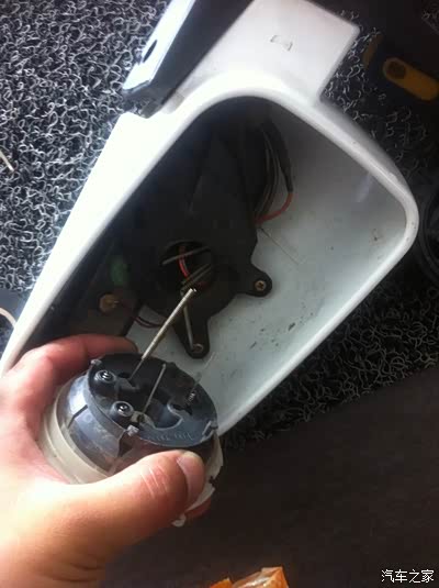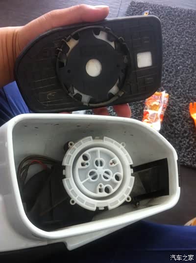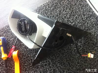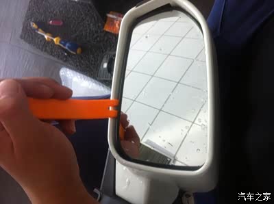 接下来开始分解后视镜了,镜片用工具一点一点敲下来的,没有想像的那么脆弱