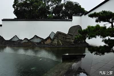 通过內庭院將內外空间串连,使自然融于建筑,是贝聿铭建筑设计的一个特色。最让大师煞费苦心的是,位于中央大厅北部的主庭院的设置。这座在古典园林元素上精心打造出的创意山水园,借着拙政园的墙,“以壁为纸,以石为绘”,高低错落排砌的片石假山,在朦胧的江南烟雨笼罩中,营造出了米芾水墨山水画的意境。