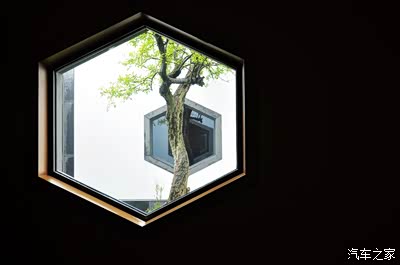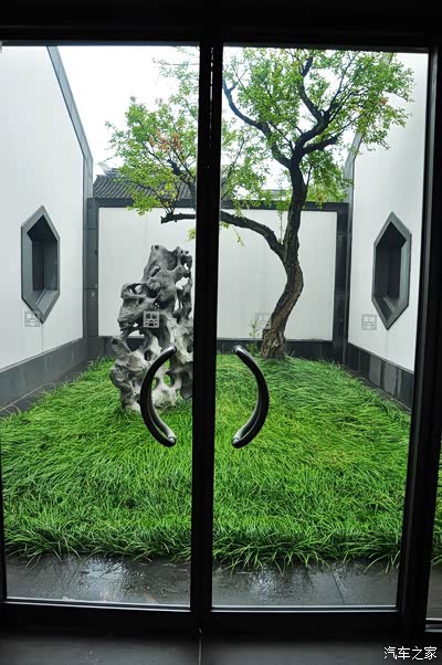 每一个窗户都采取了苏州园林的漏窗借景的艺术手法,使得窗外的自然景色、天井里的假山树木都和几何图形的窗户配成了一幅幅素雅的图画。