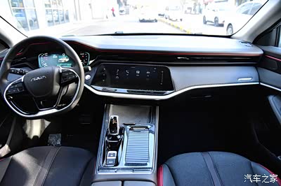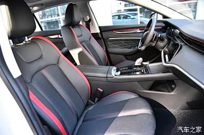 内饰的色彩是黑色搭配红色的线条,样子还是很时尚的。