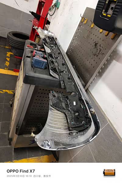 换好了。有两个螺丝在保险杠下压着,所以要拆下来才能装得上装饰条。