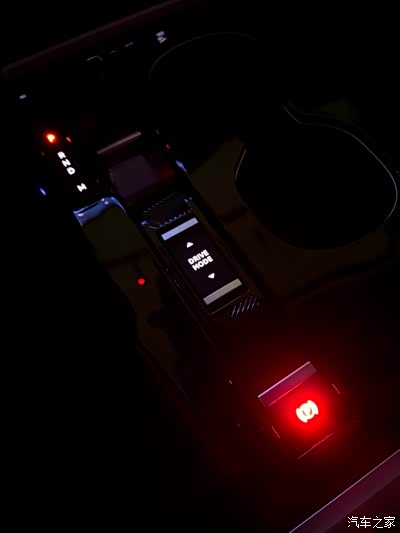 不开小夜灯的情况下,档位电子挂档也很清晰明了,包括一键启动,车窗按键,后视镜按键,USB接口,都是有着不同形状的夜灯,方便使用和区分。