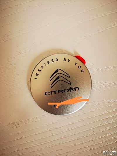 徽章是铝制的,应该是冲压出来的,处理工艺应该是阳极氧化, 雪铁龙凡尔赛LOGO 字符是丝印上去的,厚度是挺厚的,背面覆了胶粘贴效果应该还不错。