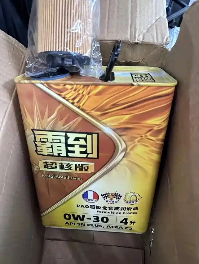 为了确保安装不耽误我的日程,我提前致电门店预约了安装时间。到达门店后,我对机油和机滤进行了验货。霸到机油金黄色的外包装格外引人注目,机油桶采用金属材质,形状规则的长方体设计,这种包装让我眼前一亮,显得高端大气。