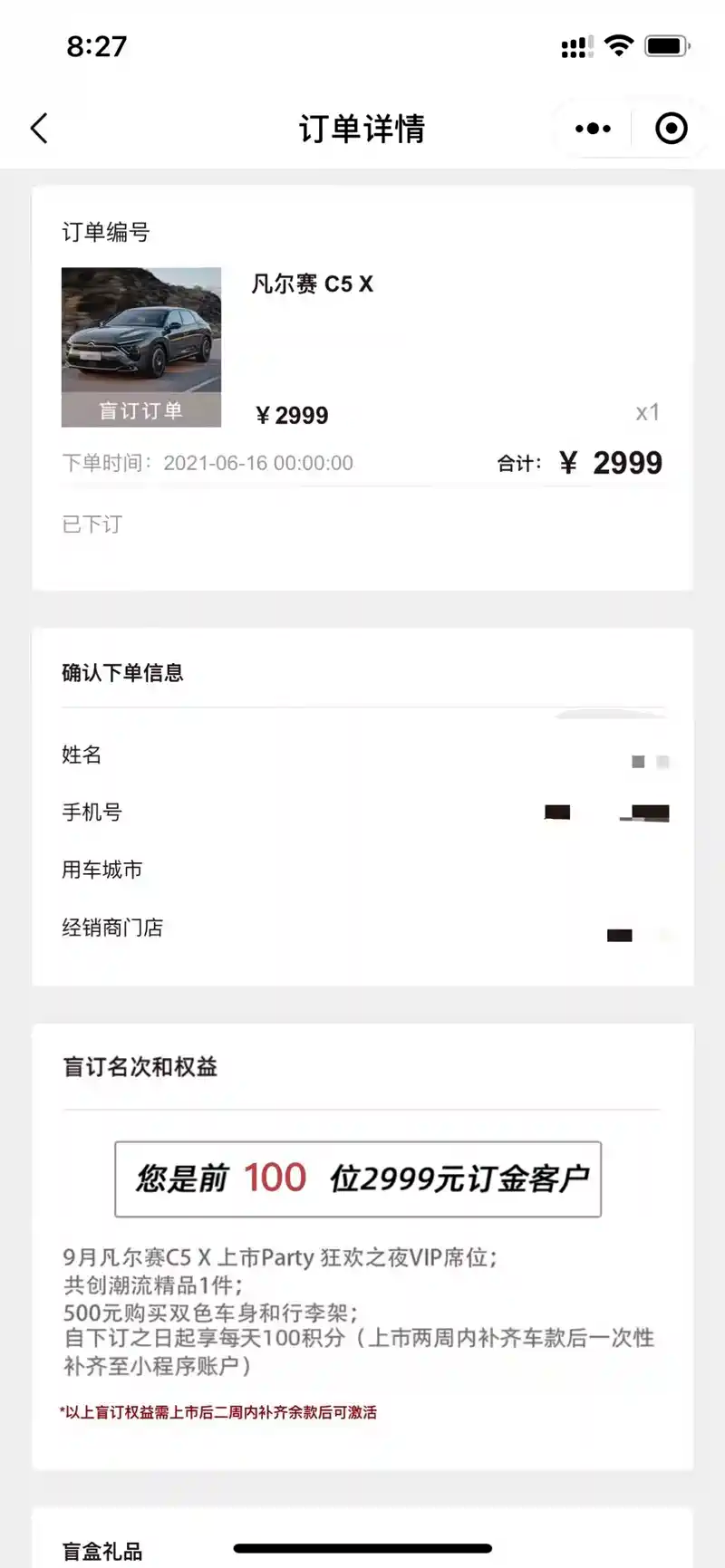 6月份凡尔赛盲定的时候,我第一时间在网上进行里操作,属于前100名的用户,报着激动的心情开了2次盲盒,结果。。。