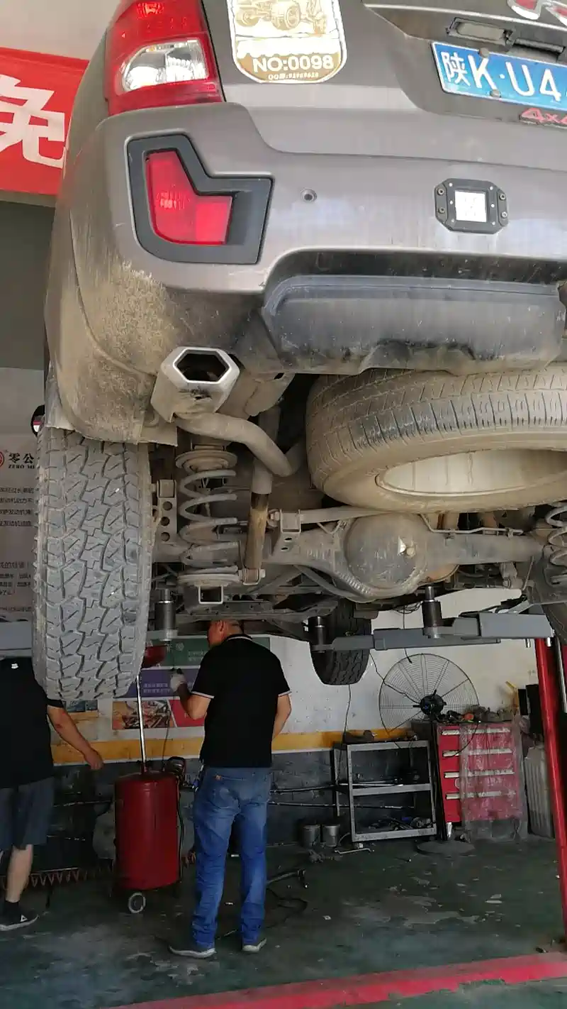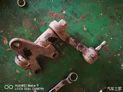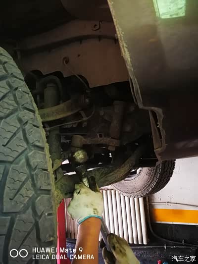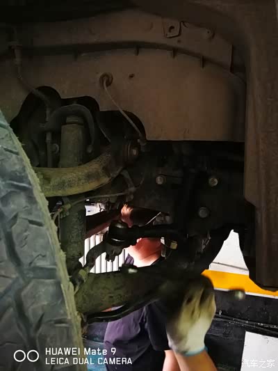 8月23日要跑高速回老家接孩子,为了保险还是上升降机检查地盘,心细的修理工判断跑偏原因,检查前轮上下支臂,