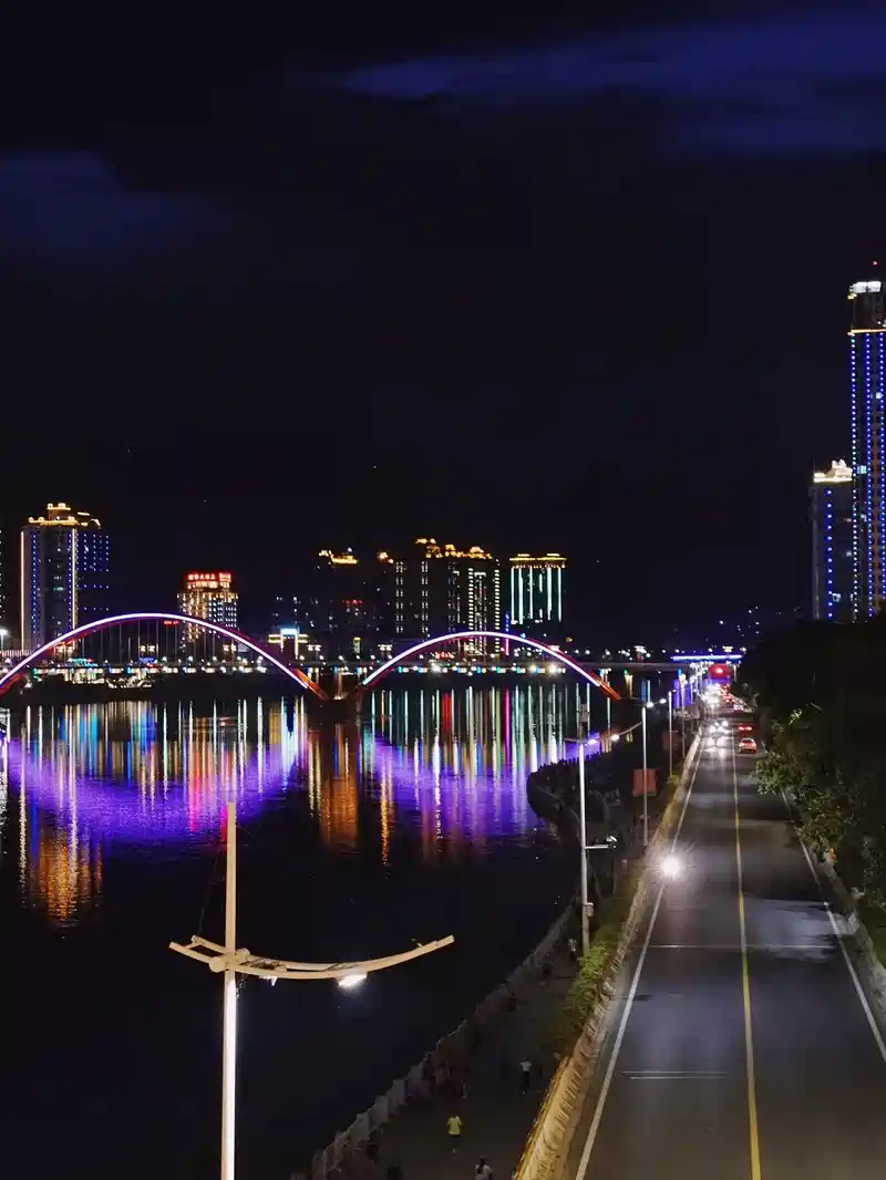 夜幕下的江景显得非常漂亮。